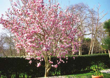 Φυλλοβόλος θάμνος με σφαρική εμφάνιση, λευκή και ρόζ ανθοφορία Φεβρουάριο – Απρίλιο.Υ 5μ Δ 2μ.